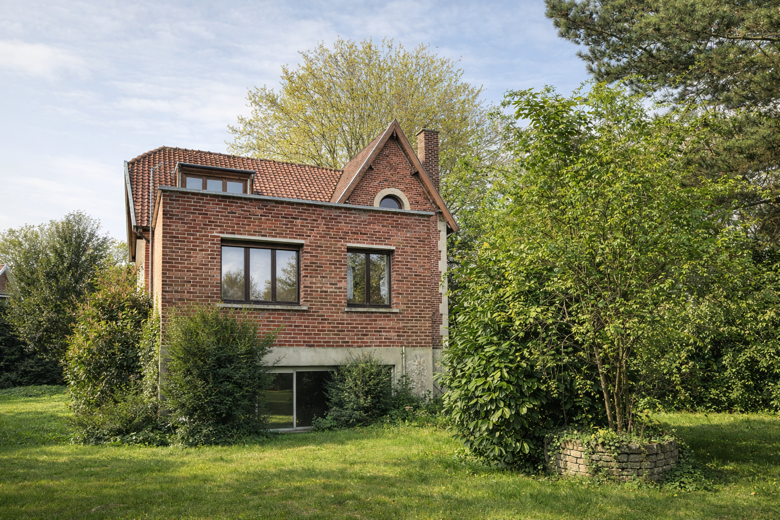 Derrière sa façade en brique rouge au style flamand, elle dévoile une architecture marquée par ses volumes, ses ouvertures et une distribution pensée pour la vie de famille.